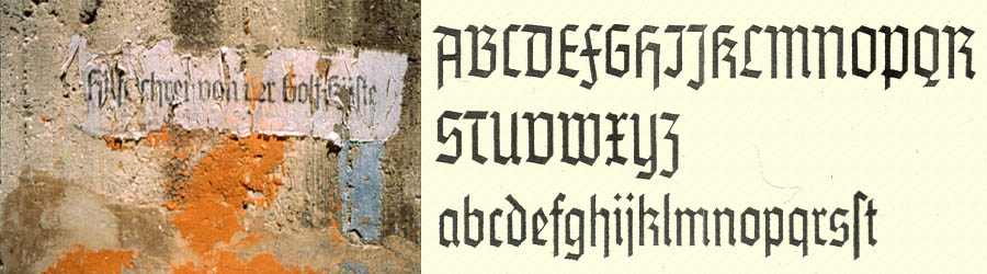 Stick on a message of an actual war to the concrete walls, written in "Tannenberg" letters of Nazi-times!